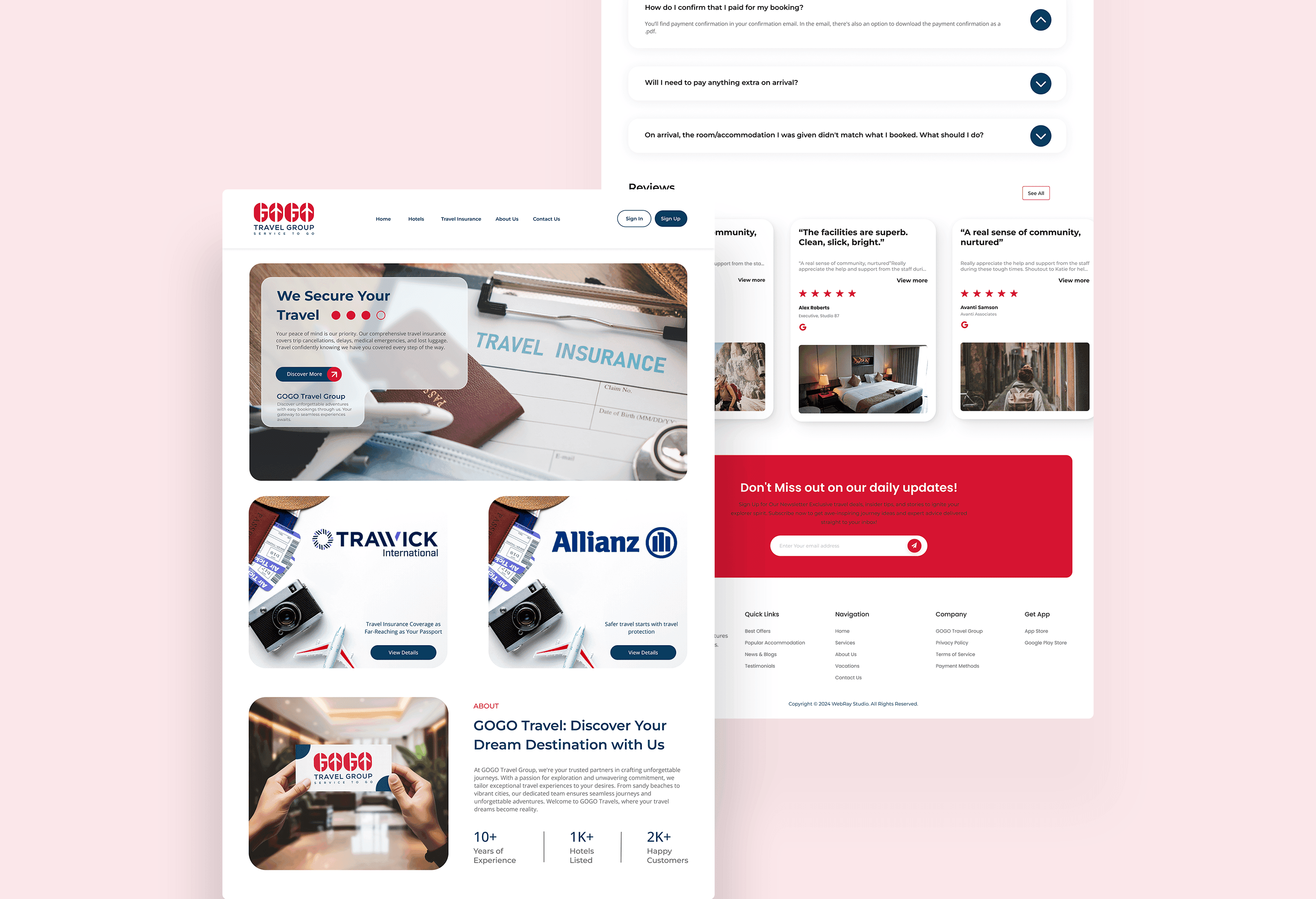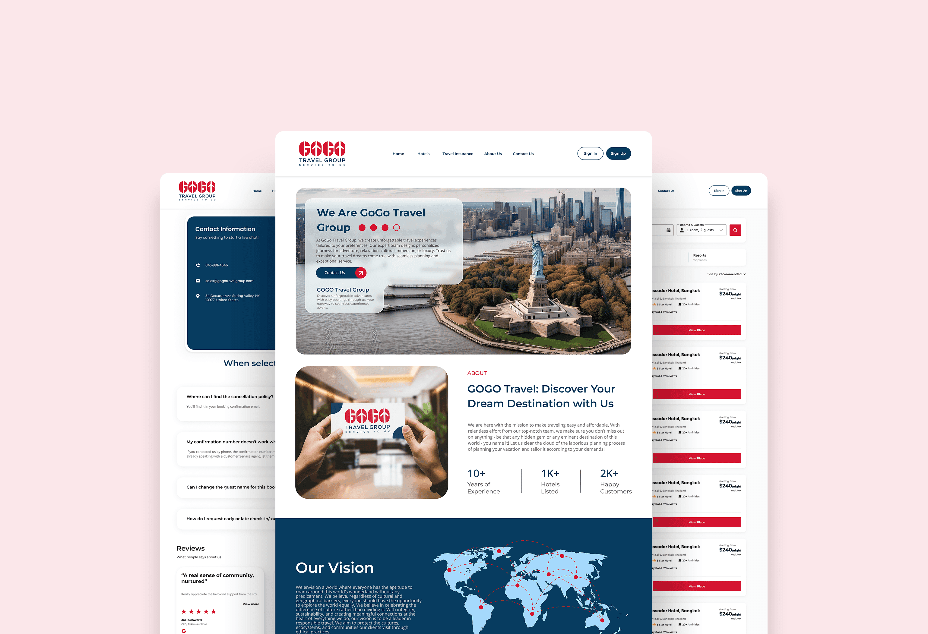 GoGo Travel Group, an international hotel-booking and travel services company, partnered with us to modernize their digital presence. Their existing website lacked clarity, visual hierarchy, and a seamless booking flow, which made it difficult for users to browse destinations, compare hotels, and complete reservations confidently.