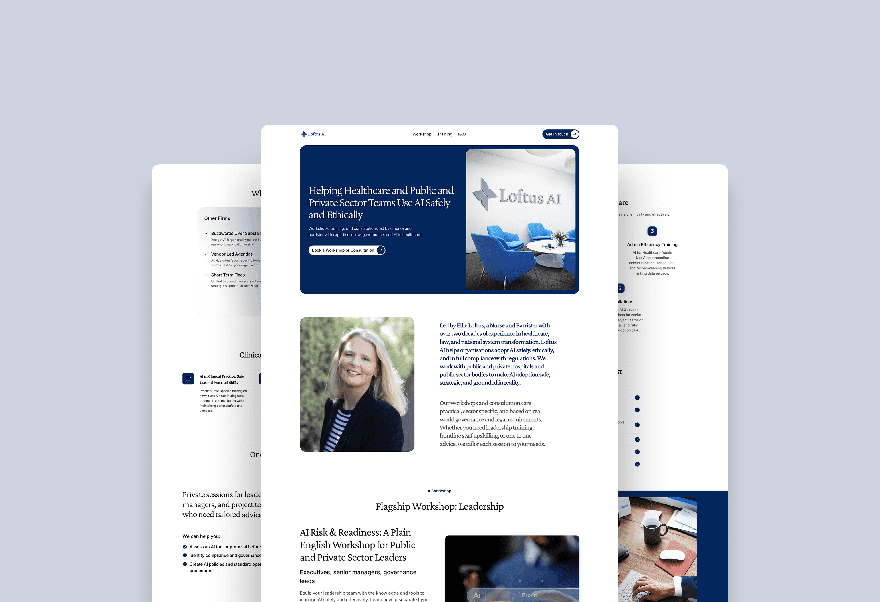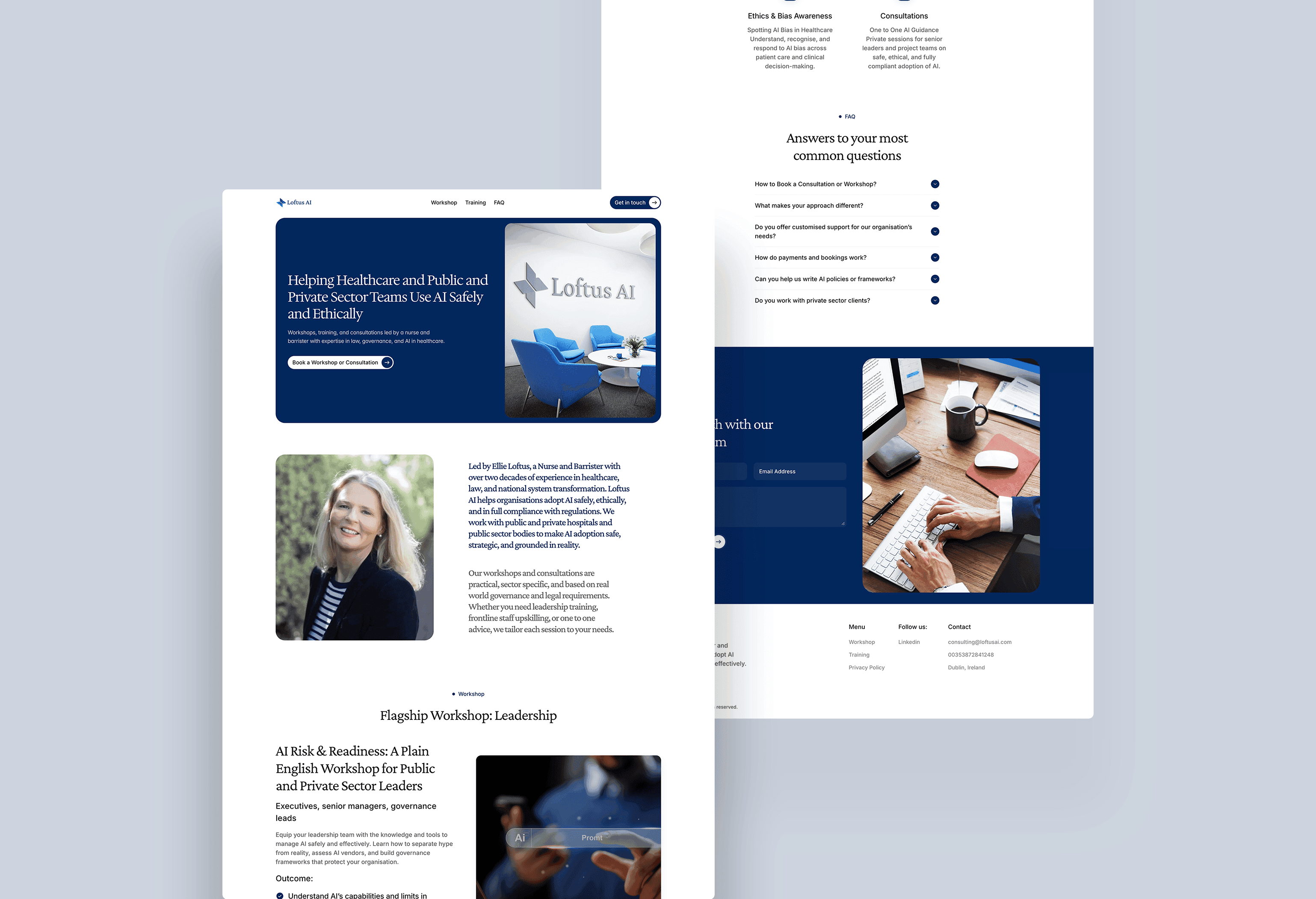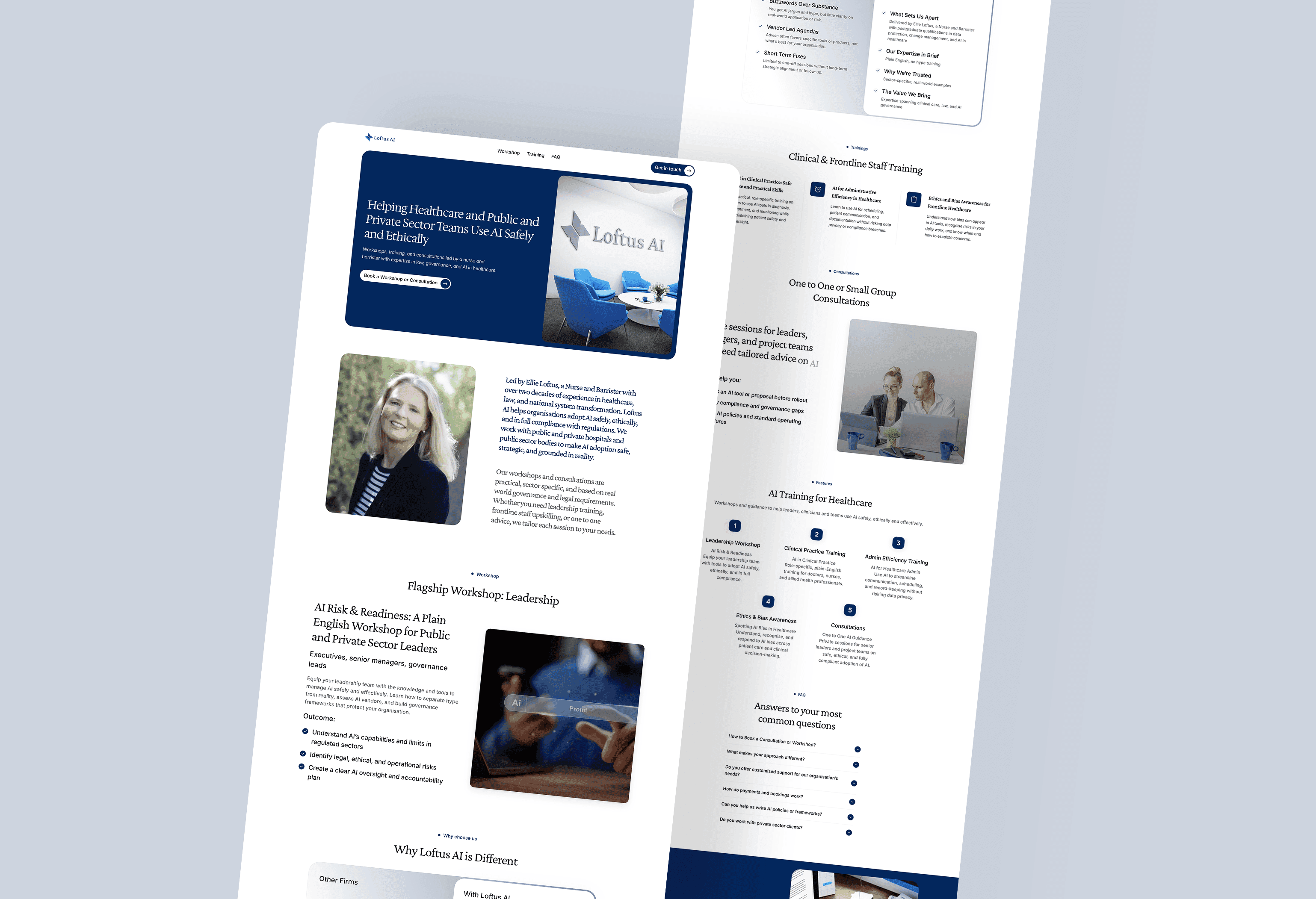 The new website strengthened Loftus AI’s credibility, improved comprehension of their services, and positioned them as a trusted partner for healthcare and public sector teams adopting AI safely, ethically, and in full compliance with regulations.