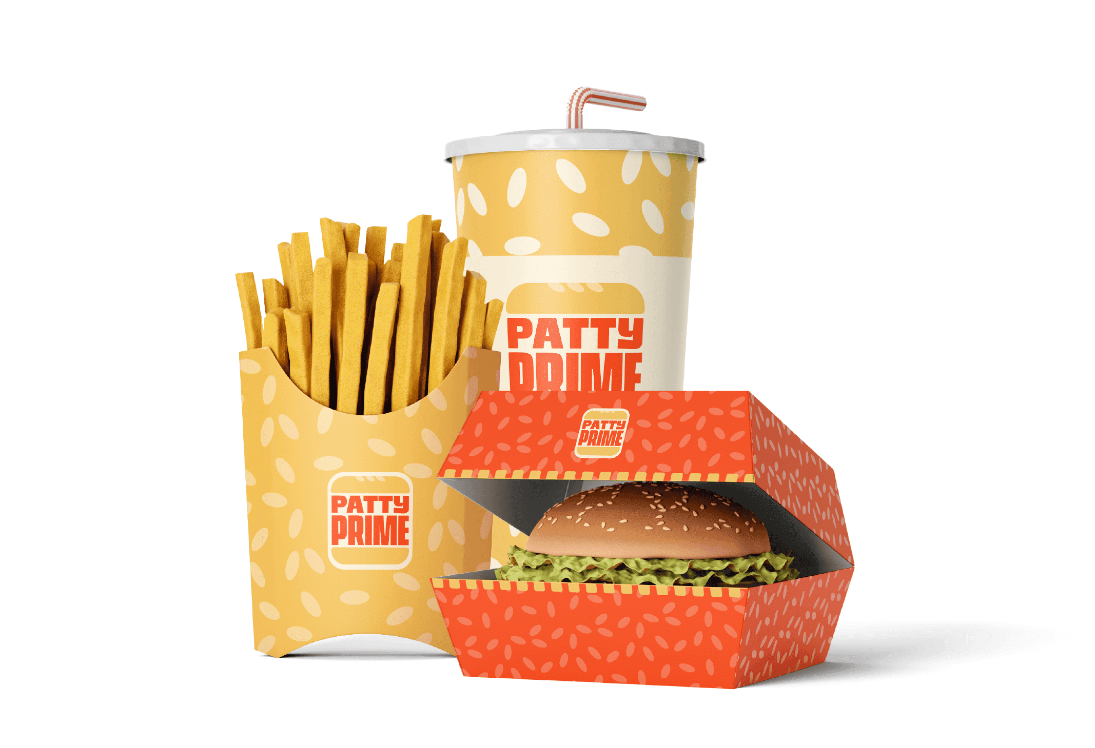 Patty Prime, a new fast-food concept focused on burgers, fries, and delivery, partnered with WebRay Studio to create a full visual identity that feels energetic, memorable, and instantly recognizable.