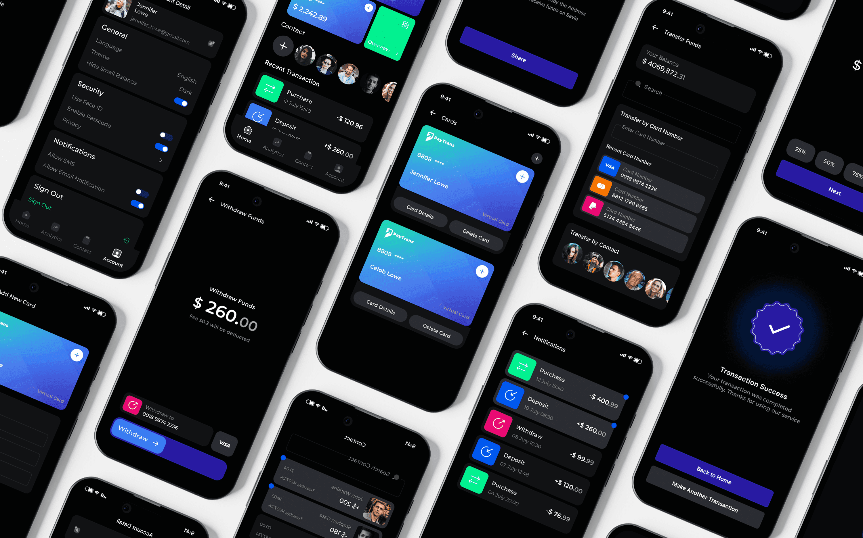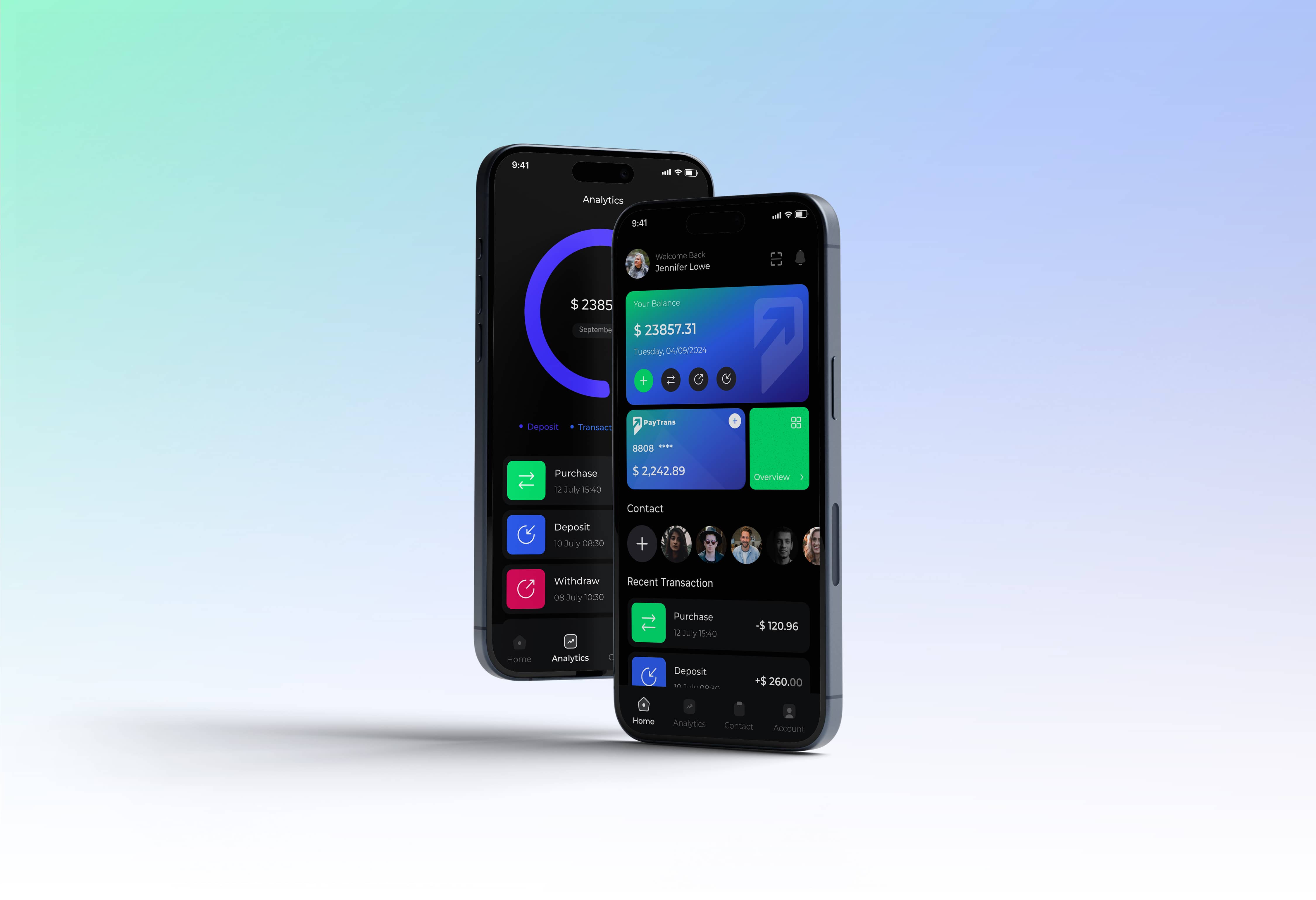 PayTrans approached us with a goal to elevate their entire mobile experience. They wanted a clean, intuitive, and future-ready interface that could simplify financial tasks for everyday users while still feeling powerful enough for advanced features like analytics, transfers, and multi-card management.